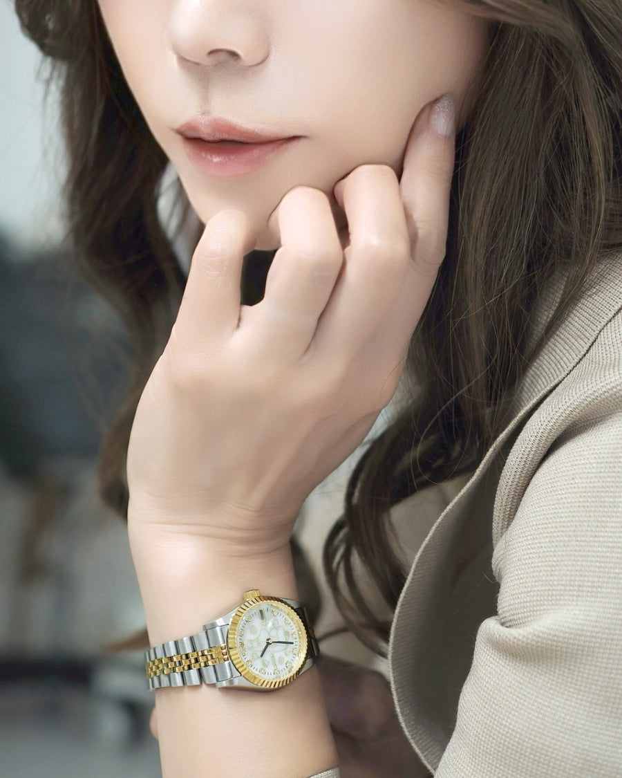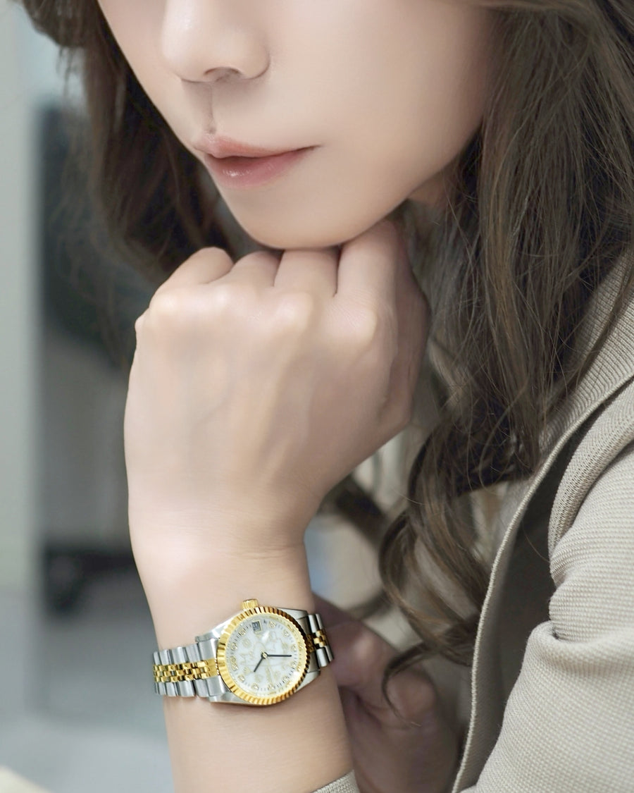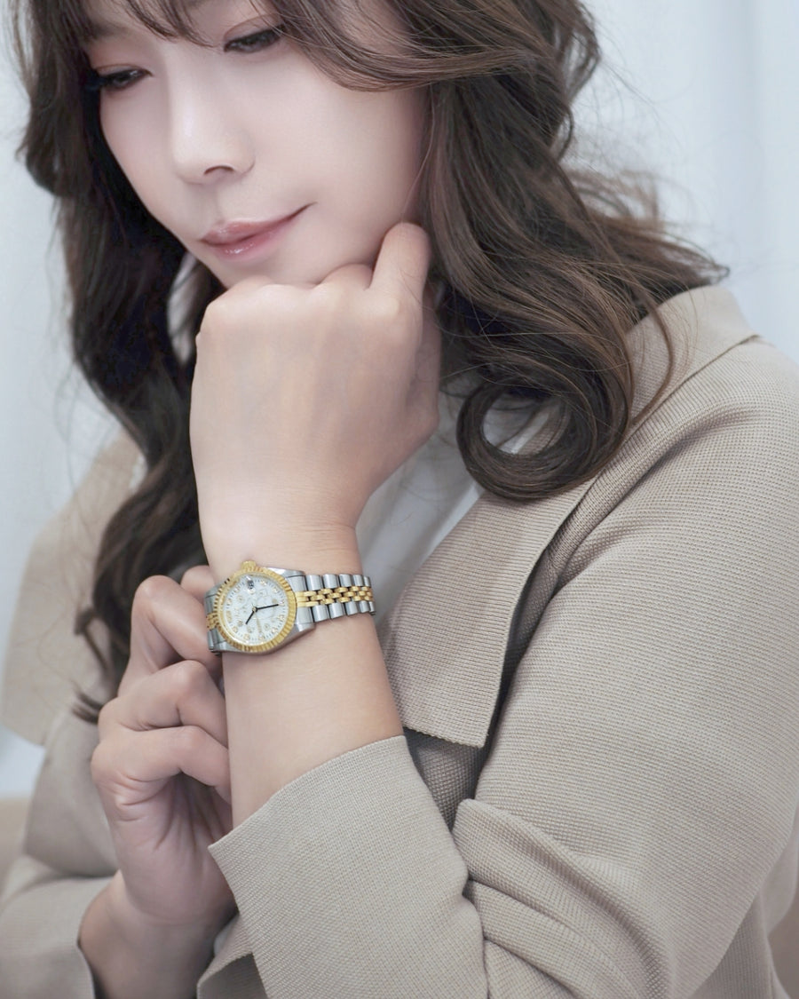 ダイヤルには天然ダイヤモンド2石がキラリと輝く。
