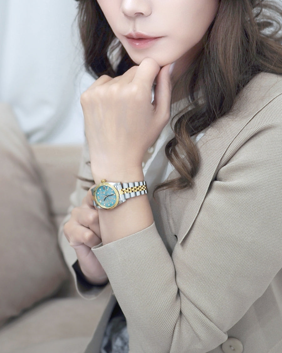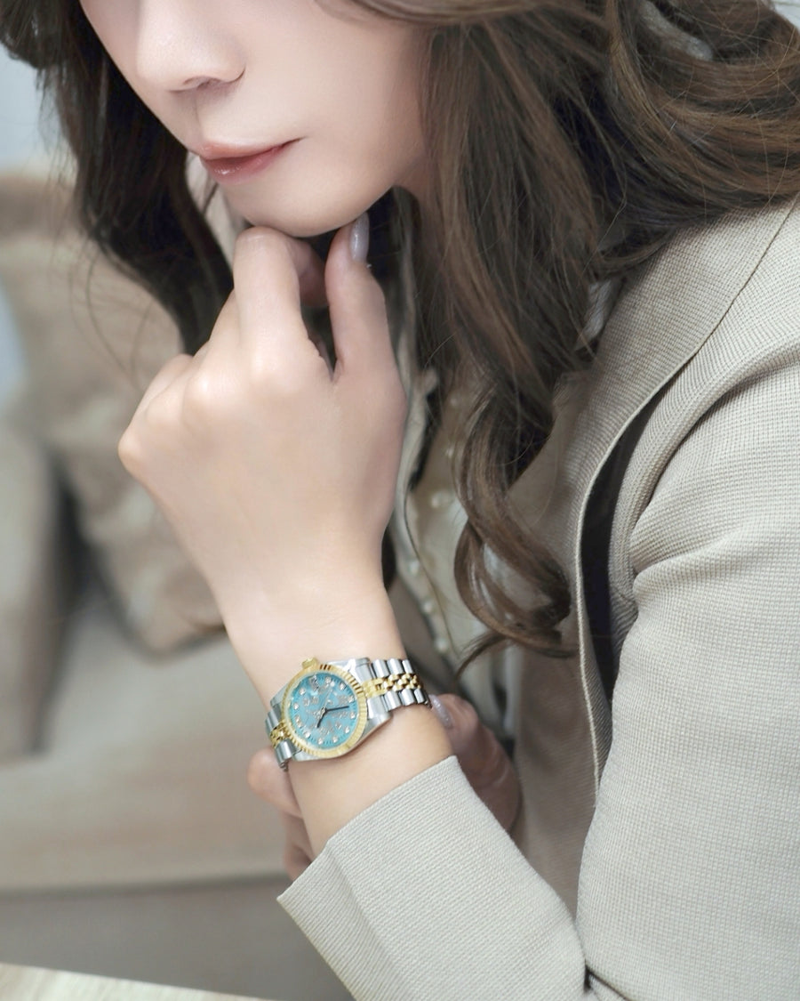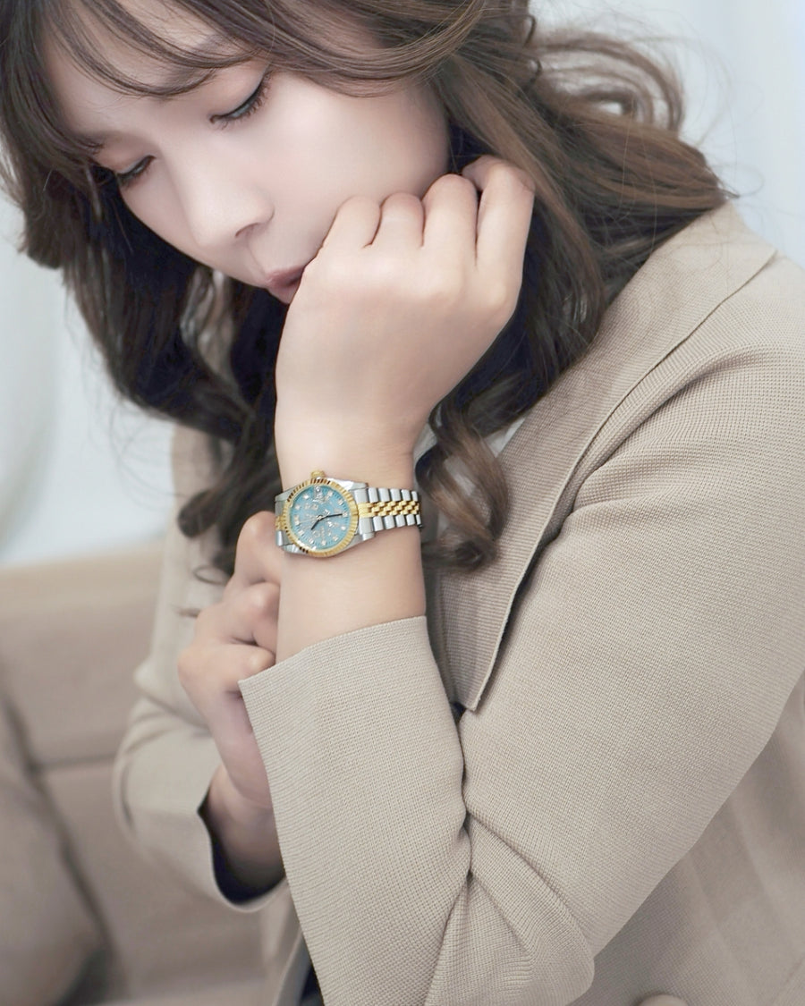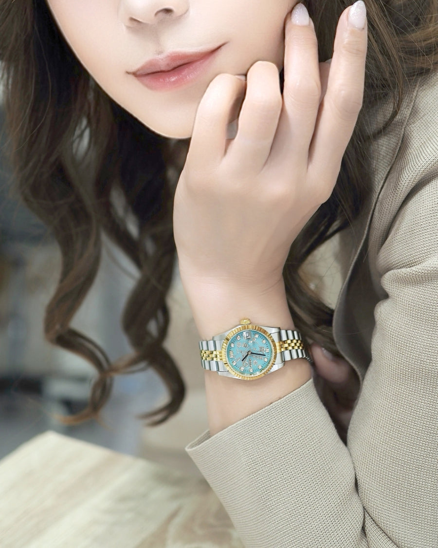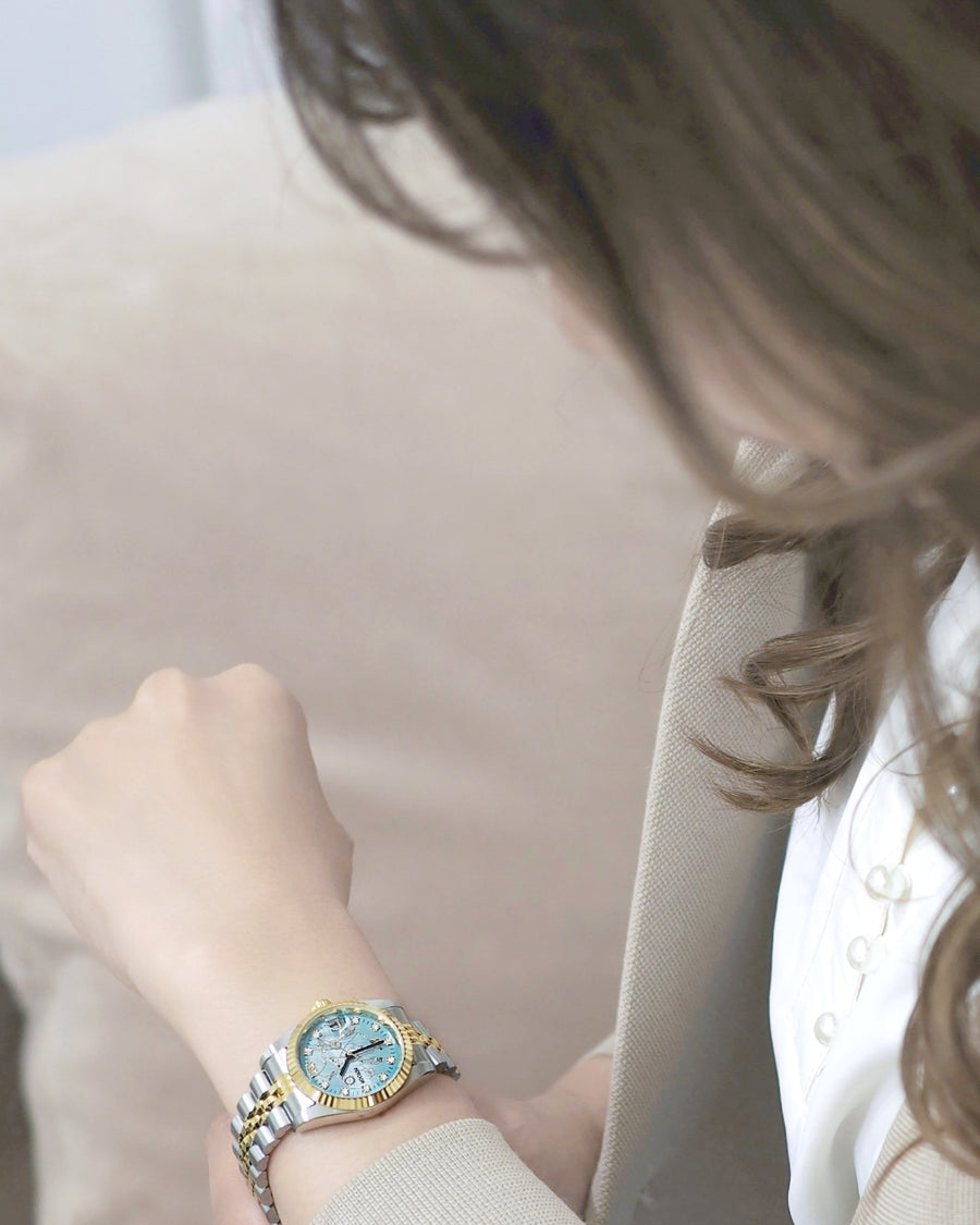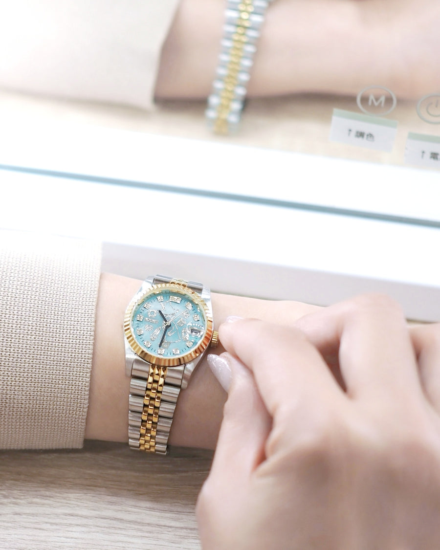 ケース・ベルト/ステンレス、風防/クリスタルガラス、ダイヤル/天然ダイヤモンド