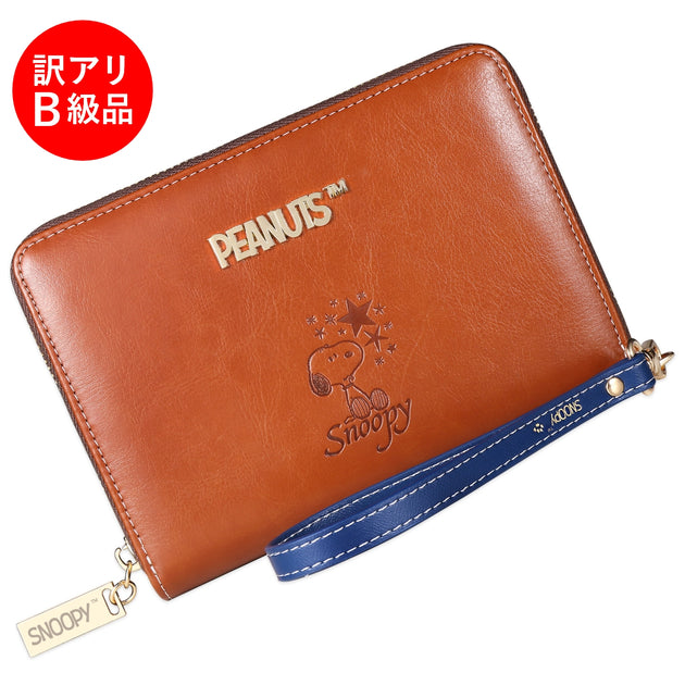 【訳アリB級品】[スヌーピー/SNOOPY]ストラップ付 印鑑も入る ジャバラ式 デニム生地通帳ケース(ブラウン)