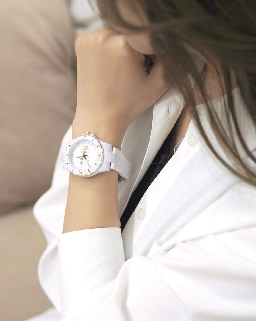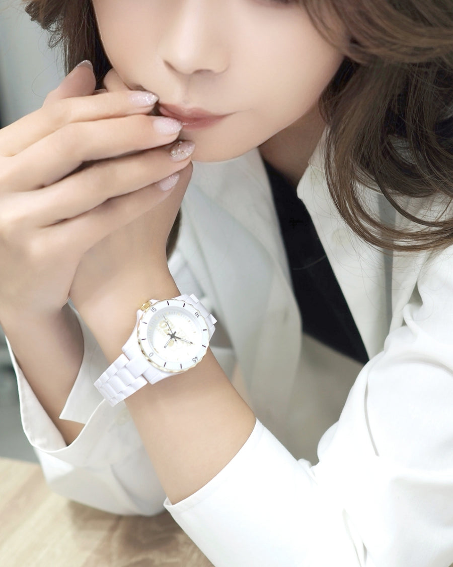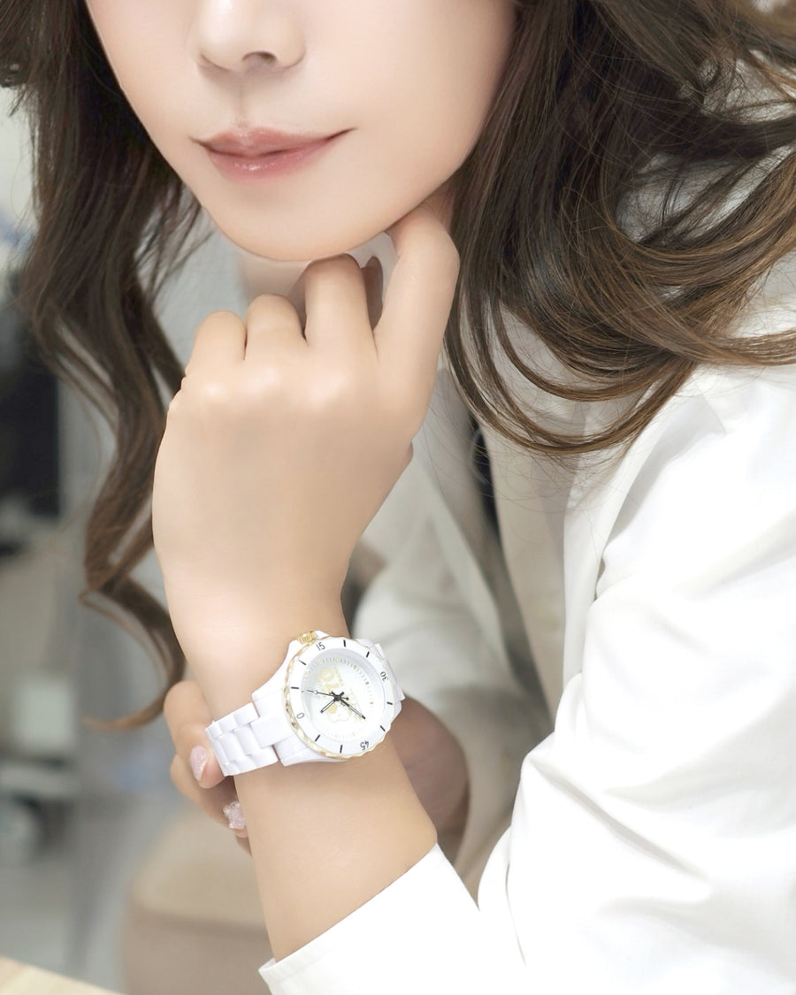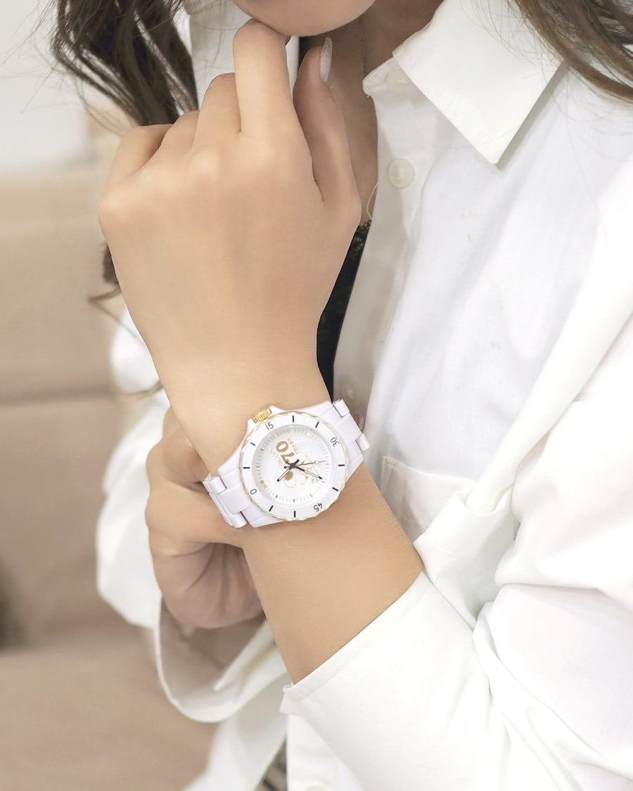 [スヌーピー/SNOOPY]誕生70周年記念 ダイヤハイブリッドセラミック腕時計(ホワイト)