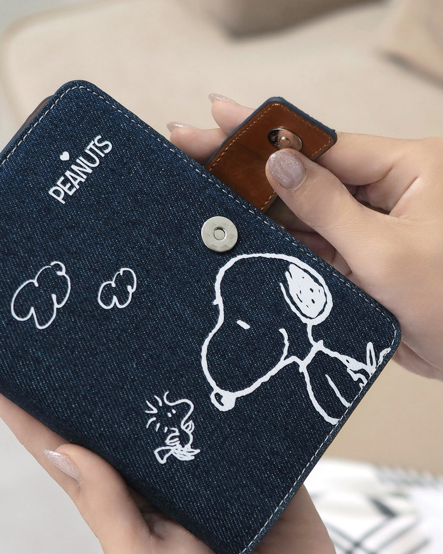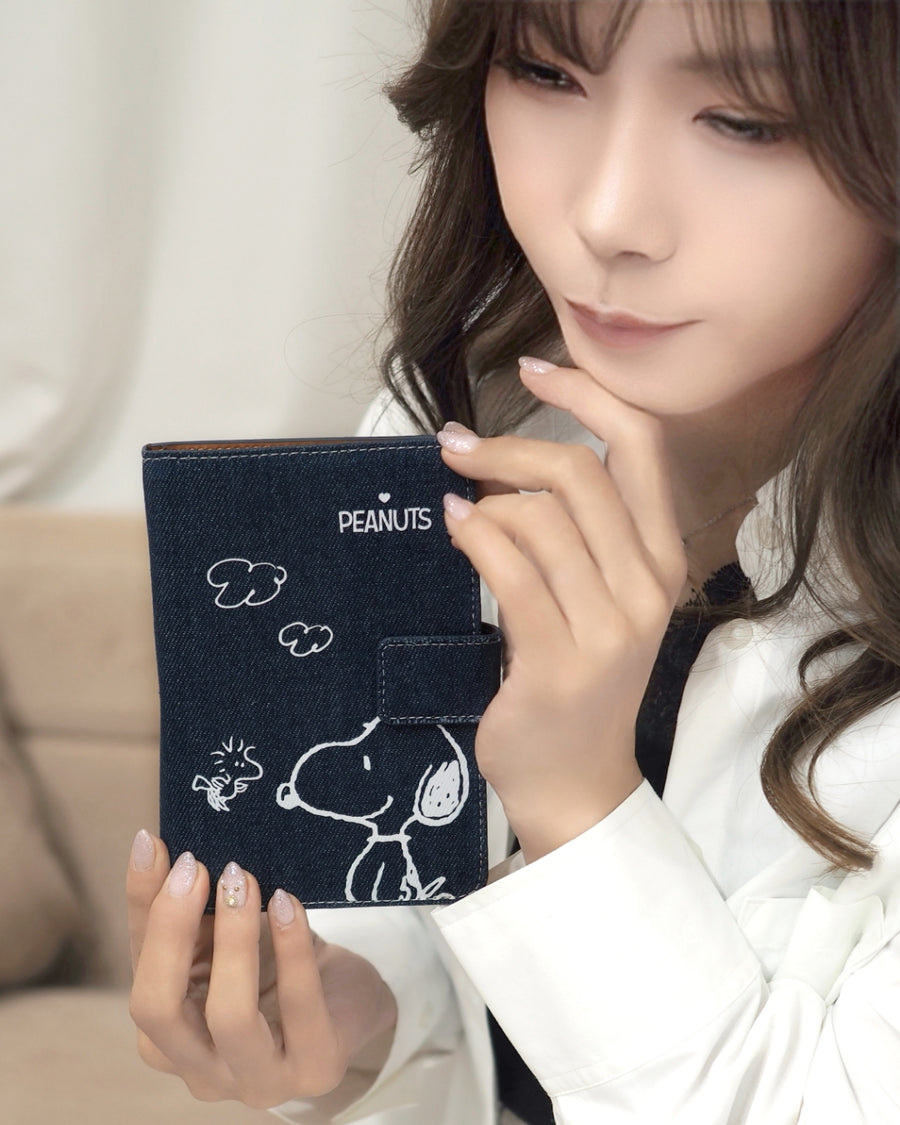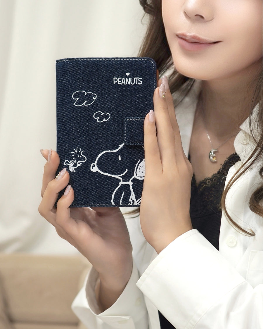 【訳アリB級品】[スヌーピー/SNOOPY]ストラップ付 印鑑も入る ジャバラ式 デニム生地通帳ケース(ブルー)