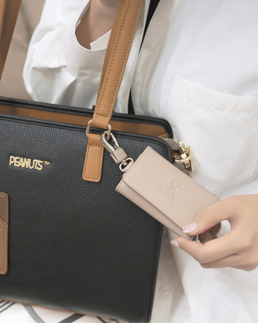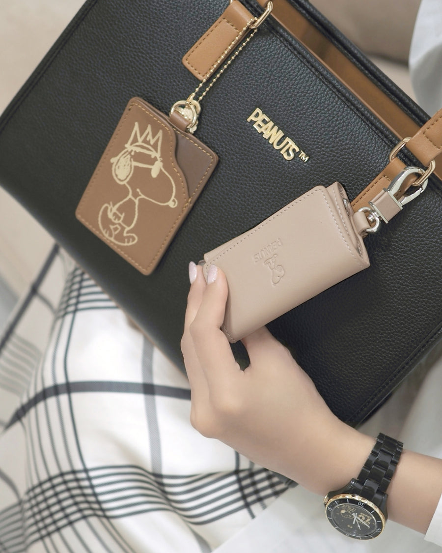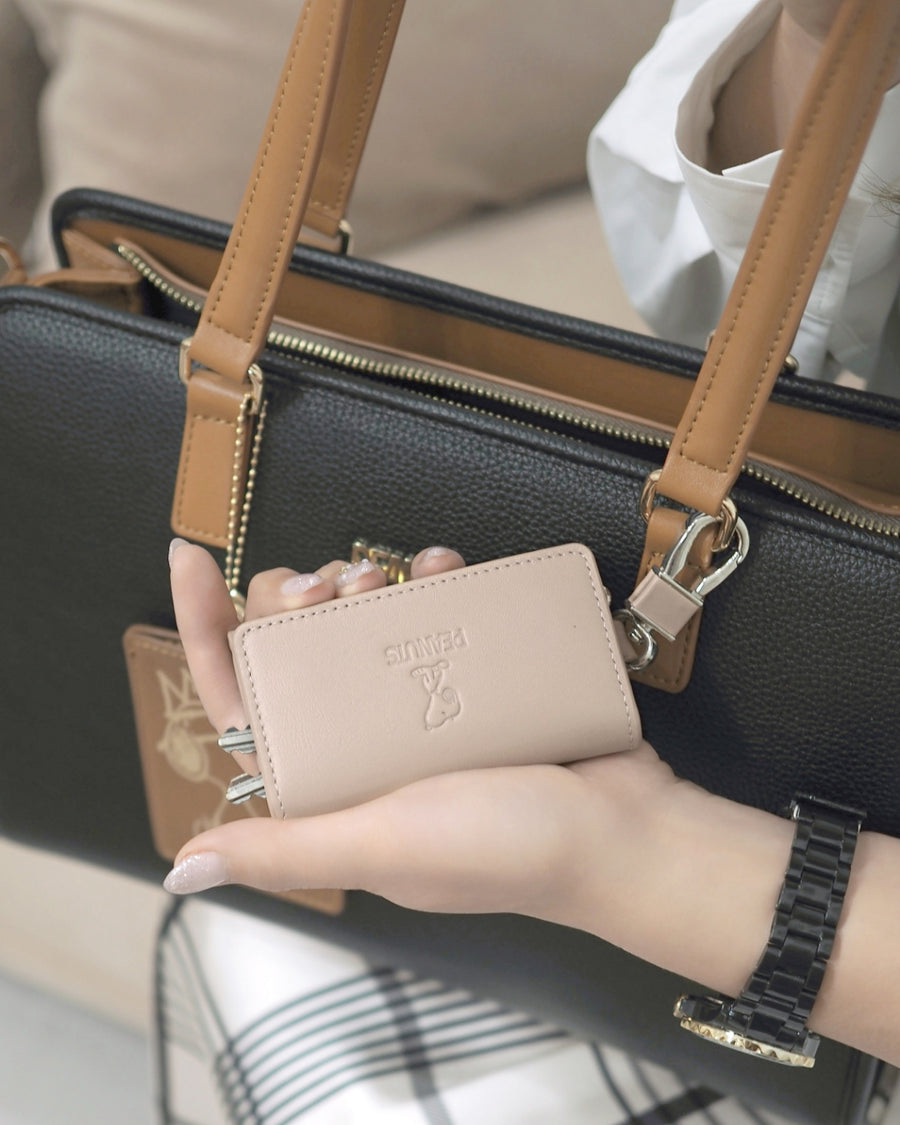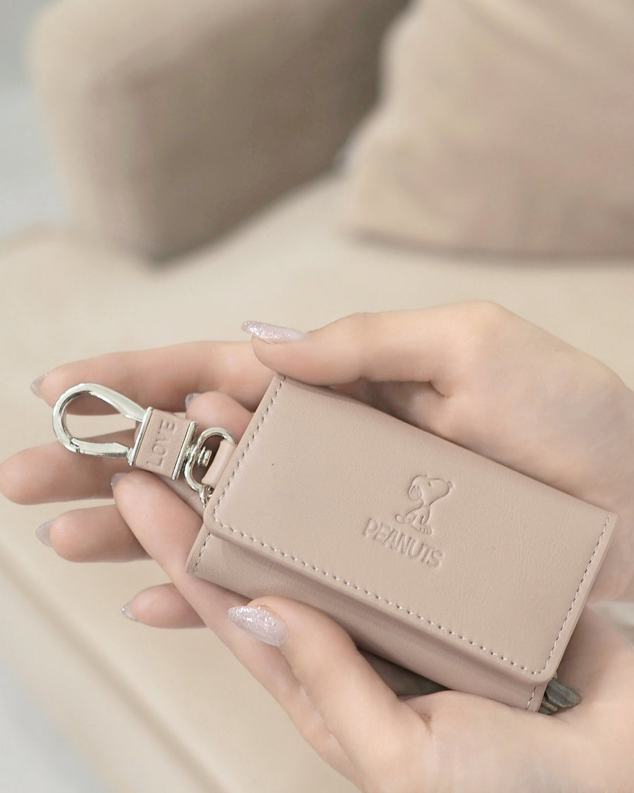 [史努比/SNOOPY]意大利皮革5钩钥匙包(玫瑰米色)